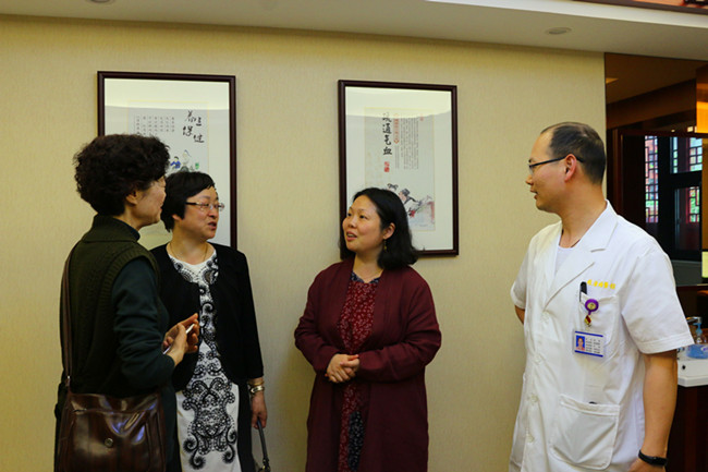 盧衛芳副董事長(cháng)就國醫館基本情況向項芳云主席一行作詳細介紹,并陪同參觀(guān)藥師殿、中藥房、專(zhuān)家診室、特色中醫理療室及常駐專(zhuān)家工作室等,重點(diǎn)就國醫館名醫專(zhuān)家團隊以及客戶(hù)反饋等方面情況與項芳云主席深入交流。