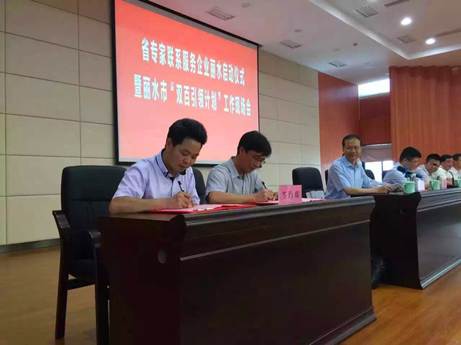 2016年6月22日下午,省專(zhuān)家聯(lián)系服務(wù)企業(yè)工作制度麗水啟動(dòng)儀式暨麗水市“雙百引領(lǐng)計劃”工作現場(chǎng)會(huì )在浙江眾益制藥股份有限公司召開(kāi),中共麗水市委常委、組織部部長(cháng)胡俠,市人力資源和社會(huì )保障局局長(cháng)吳善印及麗水市首批入選“百名博士入百家企業(yè)人才引領(lǐng)計劃”人才項目的專(zhuān)家、企業(yè)代表參加會(huì )議。會(huì )上,戴德雄副總經(jīng)理代表公司與麗水市林業(yè)科學(xué)研究院劉躍鈞教授就入選項目正式簽約。