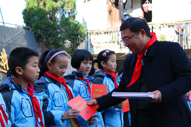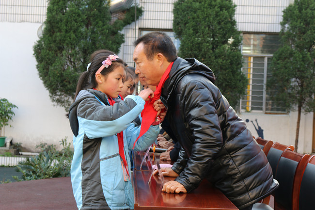 少先隊員代表為在座領(lǐng)導和嘉賓系紅領(lǐng)巾