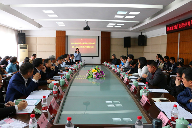 2017年4月12日上午,浙江維康藥業(yè)股份有限公司博士后開(kāi)題報告會(huì )在公司會(huì )議室召開(kāi),中國工程院院士劉昌孝、天津藥物研究院副研究員李亞卓、許浚,江西中醫藥大學(xué)副校長(cháng)楊明、廖正根教授、胡鵬翼博士等專(zhuān)家團隊,浙江省人力資源和社會(huì )保障廳專(zhuān)技處副處長(cháng)麻曉莉,麗水市人力資源和社會(huì )保障局局長(cháng)吳善印、副局長(cháng)陳曉恒等領(lǐng)導,公司總經(jīng)理劉根才、副總經(jīng)理戴德雄參加會(huì )議,麗水各縣市70余家企業(yè)到會(huì )觀(guān)摩。