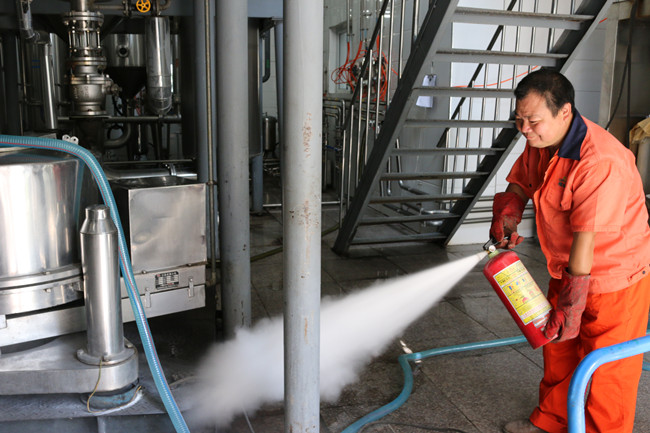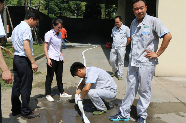 火災演練結束后,林海波副總經(jīng)理向大家介紹了滅火器、消防水槍等器材的使用方法和注意事項,在場(chǎng)員工一一學(xué)習并現場(chǎng)使用消防水槍和滅火器成功撲滅火苗。