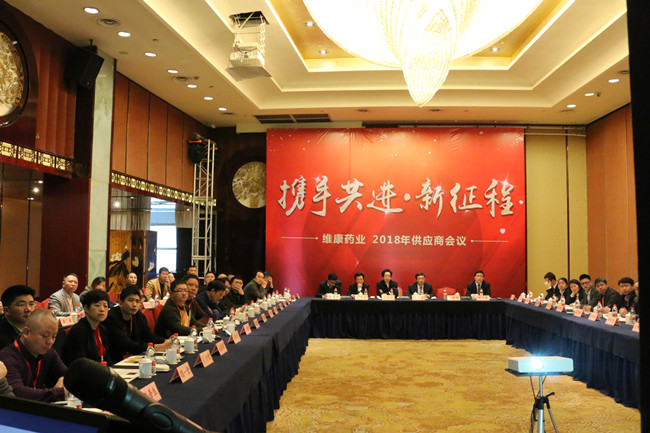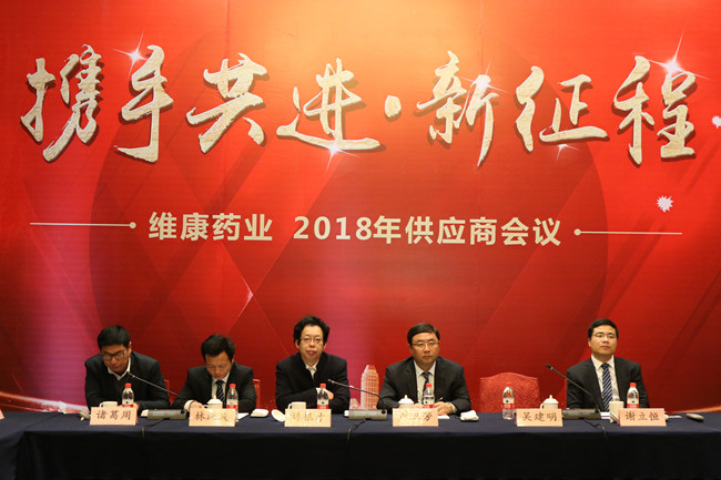3月3日,維康藥業(yè)召開(kāi)“攜手共進(jìn)·新征程”2018年供應商會(huì )議,來(lái)自全國各地40余家重點(diǎn)供應商代表齊聚一堂,共謀合作良策。公司總裁盧衛芳、黨支部書(shū)記劉根才、副總裁林海波、財務(wù)總監謝立恒、生產(chǎn)總監丁京偉、工程總監諸葛周、質(zhì)量總監趙準等領(lǐng)導出席會(huì )議。會(huì )議由常務(wù)副總裁吳建明主持。