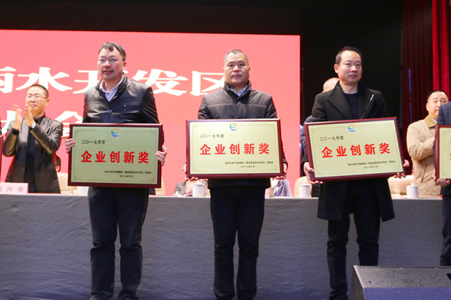 3月9日上午,2017年度麗水經(jīng)濟技術(shù)開(kāi)發(fā)區工作大會(huì )隆重召開(kāi),麗水市人民政府副市長(cháng)徐光文,麗水經(jīng)濟技術(shù)開(kāi)發(fā)區黨工委書(shū)記、管委會(huì )主任丁紹雄及開(kāi)發(fā)區主要領(lǐng)導出席會(huì )議,會(huì )議由開(kāi)發(fā)區黨工委副書(shū)記、管委會(huì )常務(wù)副主任洪勇華主持。公司總裁盧衛芳、黨支部書(shū)記劉根才、常務(wù)副總裁吳建明代表公司參加會(huì )議。