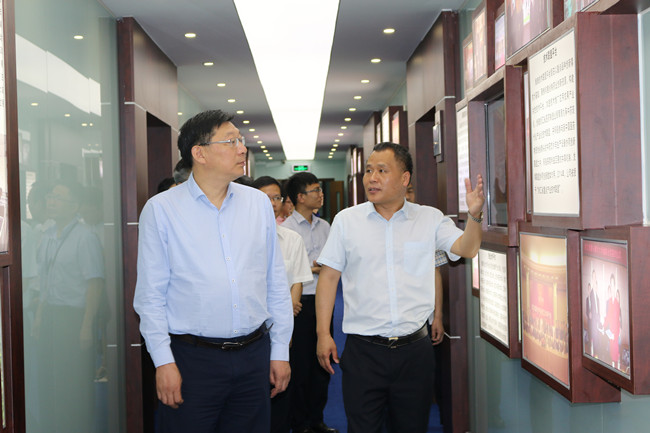 吳建明對考察組一行的到來(lái)表示歡迎,并陪同參觀(guān)了公司展示中心、維康科研苑、博士后工作站以及院士工作站,介紹了公司發(fā)展歷程、發(fā)展情況和未來(lái)發(fā)展思路,重點(diǎn)就公司產(chǎn)品研發(fā)、人才集聚、科技創(chuàng )新和平臺創(chuàng )建等方面情況作詳細介紹。