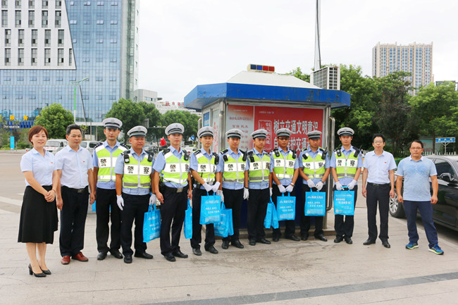 活動(dòng)中,大家先后來(lái)到街頭交通崗亭和交警支隊南城大隊,給戰高溫、抗酷暑的一線(xiàn)執勤交警們送上礦泉水、藿香正氣液以及防暑藥品,為他們在炎炎夏日中帶來(lái)清涼的問(wèn)候。