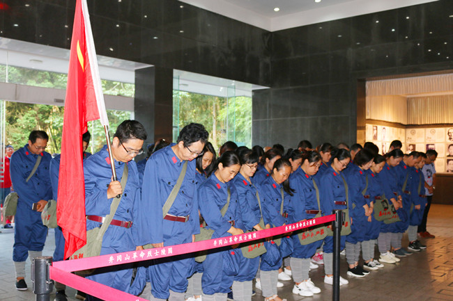 沿著(zhù)山路,大家登上黃洋界,重走朱毛紅軍挑糧小道,在哨口工事里、紅軍營(yíng)房邊,駐足聆聽(tīng)那段悲壯的戰斗歷史;在井岡山革命博物館、毛澤東朱德同志舊居、紅軍醫院,大家從一幅幅圖片和陳列的歷史實(shí)物中,進(jìn)一步了解革命先輩們?yōu)榱私夥攀聵I(yè)艱苦卓絕、頑強斗爭的曲折歷程;在井岡山革命烈士紀念館,大家肅穆而立,向在革命斗爭中犧牲的先烈和那些未能留下姓名便匆匆離開(kāi)這個(gè)世界的無(wú)名英雄致以深深的敬意。