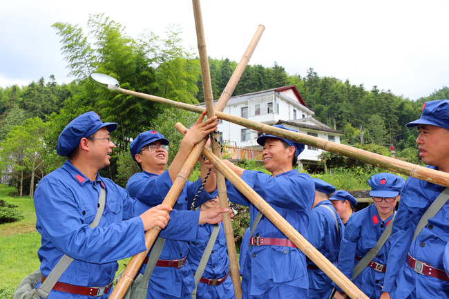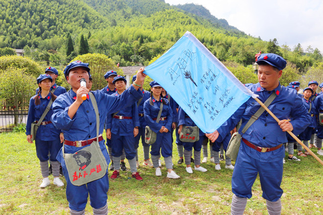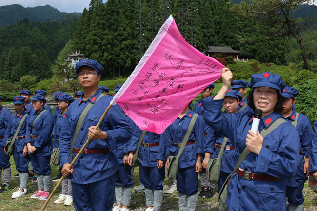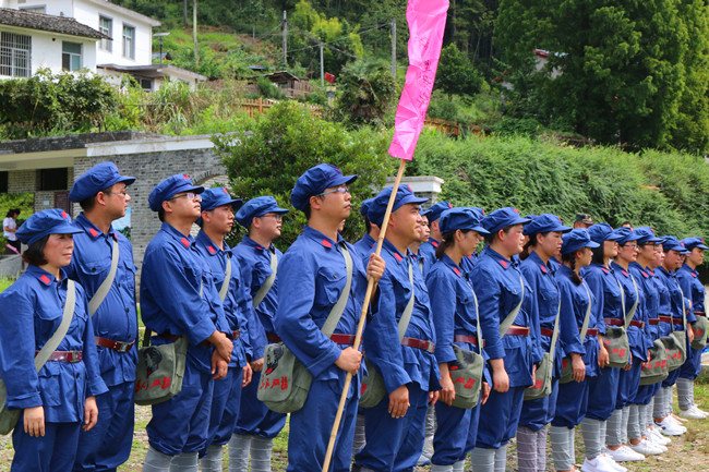 8月1日一早,大井毛澤東同志舊居旁的領(lǐng)袖峰拓展基地內出現一道“別樣的風(fēng)景線(xiàn)”,那是維康六十余名身著(zhù)紅軍服、頭戴紅軍帽的拓展團隊,“弘揚井岡山精神•凝聚新時(shí)代力量”——維康藥業(yè)黨委戶(hù)外拓展活動(dòng)在此拉開(kāi)序幕。