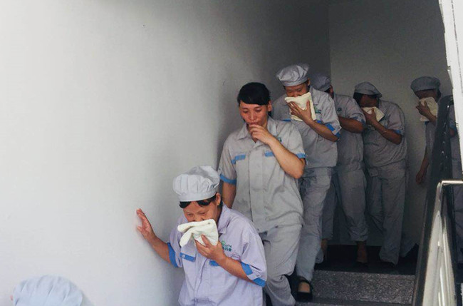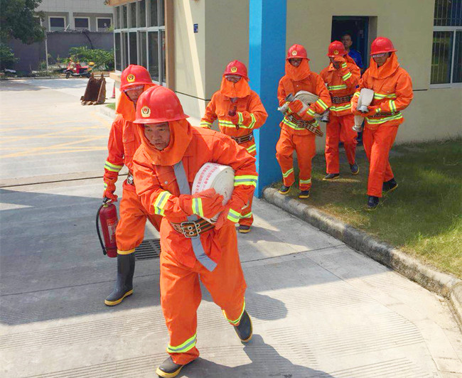 按照事先安排,下午13:30,制造二部一樓倉庫“起火冒煙”,值班人員發(fā)現火情后,立刻報告安委會(huì )啟動(dòng)消防安全應急救援預案,模擬撥打119報警電話(huà),并拉響警報。伴隨著(zhù)火災警報的廣播,各應急救援小組迅速集結,在統一指揮下有序開(kāi)展救援行動(dòng)。疏散引導小組立即組織公司員工打濕毛巾,捂住口鼻,彎腰從各樓層的消防應急通道撤離并到達指定地點(diǎn)集合。同時(shí),現場(chǎng)搶險救援、警衛警戒、醫療救護、信息協(xié)調等一系列工作緊張而有序開(kāi)展。