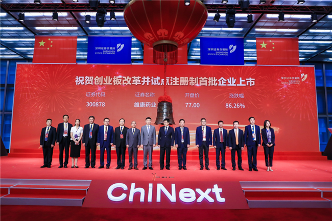 ?2020年8月24日上午9點(diǎn)30分,創(chuàng )業(yè)板改革并試點(diǎn)注冊制正式拉開(kāi)帷幕。作為首批18家企業(yè)之一,浙江維康藥業(yè)股份有限公司上市儀式于深圳證券交易所順利舉行。公司股票簡(jiǎn)稱(chēng)為“維康藥業(yè)”,股票代碼300878。