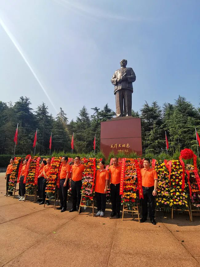 8月28日上午,在毛澤東銅像廣場(chǎng),維康藥業(yè)團隊在毛澤東銅像前肅立,敬獻花籃,鞠躬致敬,以最樸素的方式表達對毛澤東同志的無(wú)比懷念之情。