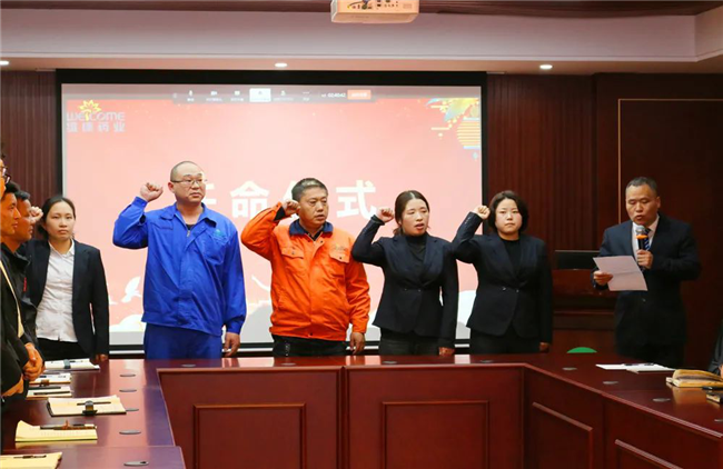 會(huì )上,新一批管理人員宣誓履職儀式莊嚴舉行,5名新任管理人員向全體員工鄭重宣誓:本人定當維護公司的各項規章制度,以推動(dòng)公司的發(fā)展為己任,忠誠公司、勤奮工作,恪盡職守、勇于擔當,求真務(wù)實(shí)、創(chuàng )先爭優(yōu),服從大局、維護團結,公道正派、廉潔自律,奮發(fā)有為、不辱使命,為維康藥業(yè)服務(wù),對維康藥業(yè)負責!鏗鏘有力的宣誓響徹會(huì )場(chǎng),新血液為公司注入新力量,新力量助力明天更輝煌!
