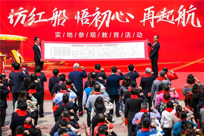 中國醫藥物資協(xié)會(huì )特別發(fā)布《筑夢(mèng)健康中國行動(dòng)誓言》,現場(chǎng)全體醫藥人鄭重宣誓:“南湖建黨,如日東升;南湖紅船,面向大海;紅船精神,光耀東方;百年輝煌,震撼世界;醫藥行業(yè),光灑雨潤;黨的關(guān)懷,基因傳承;一路創(chuàng )新,高歌猛進(jìn);新的時(shí)代,新的征程;新的夢(mèng)想,新的使命;健康中國,重任在肩;不忘紅船,牢記初心;制藥賣(mài)藥,以人為本;安全是山,質(zhì)量是天;生命至上,砥礪前行;強國強民,敢闖會(huì )拼;再起航程,筑夢(mèng)未來(lái)!”