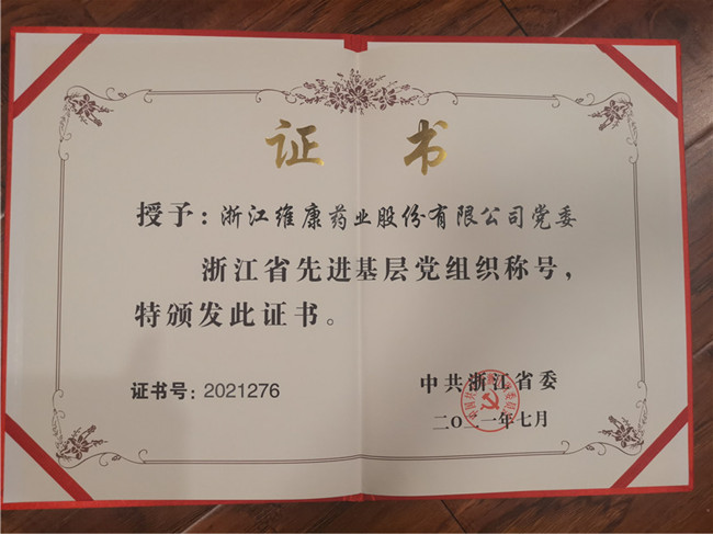 7月1日下午,浙江省慶祝中國共產(chǎn)黨成立100周年大會(huì )在嘉興市隆重舉行。會(huì )上表彰了一批省優(yōu)秀共產(chǎn)黨員、省優(yōu)秀黨務(wù)工作者和省先進(jìn)基層黨組織,省領(lǐng)導為受表彰的個(gè)人和集體代表頒獎,維康藥業(yè)黨委被授予“浙江省先進(jìn)基層黨組織”榮譽(yù)稱(chēng)號,公司黨委書(shū)記葉萍參加大會(huì )并領(lǐng)獎。